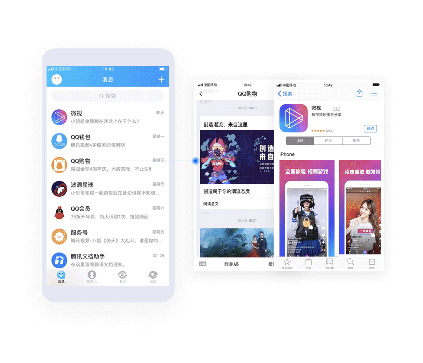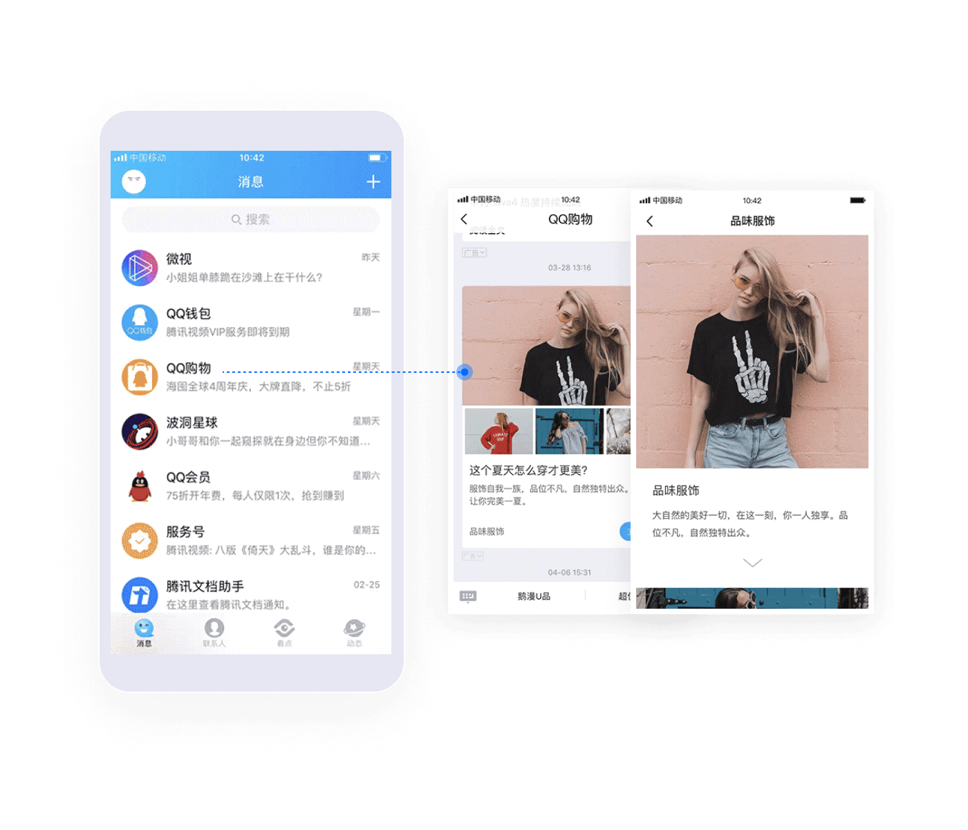 QQ購物圖文廣告:作為手機QQ唯一一個(gè)全量推送的公眾賬號,一次推送帶來(lái)海量、強勢曝光。
