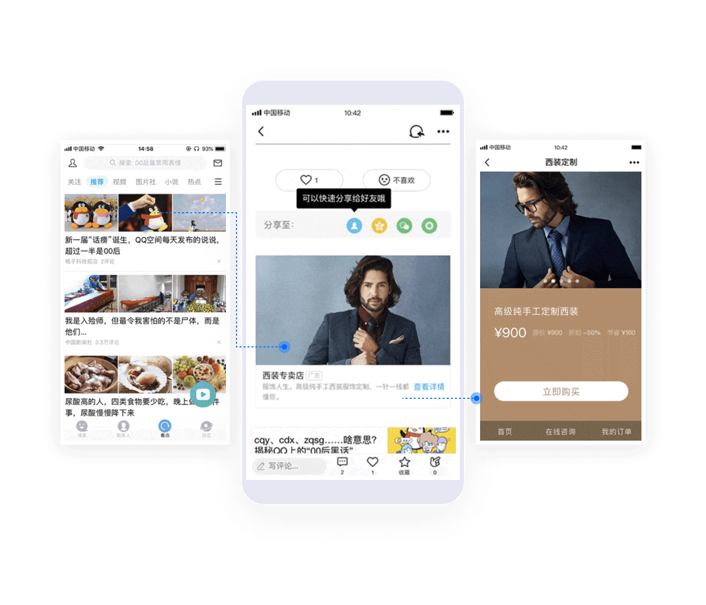 首頁(yè)信息流:聚焦年輕人群,內容和興趣精準匹配;手機QQ 唯一雙入口推薦,廣告位入口淺;依托用戶(hù)關(guān)系鏈,放大品牌 影響力;數據賦能,品效合一。